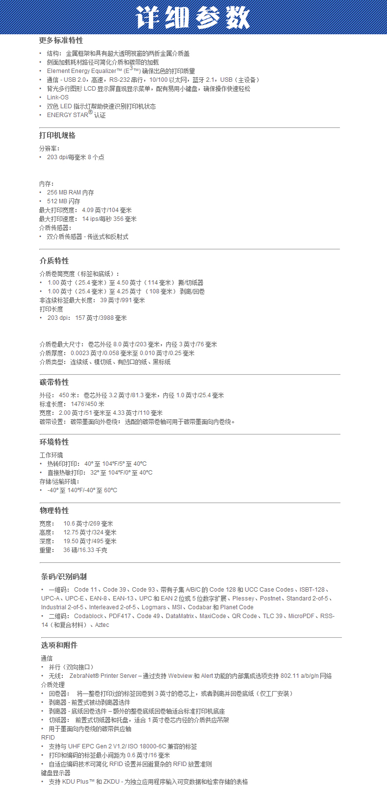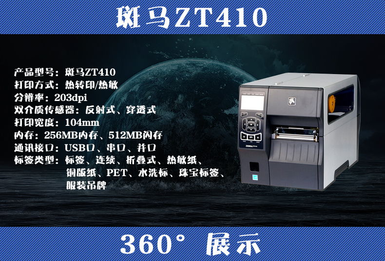 商品名称:Zebra 斑马 ZT410 条码打印机