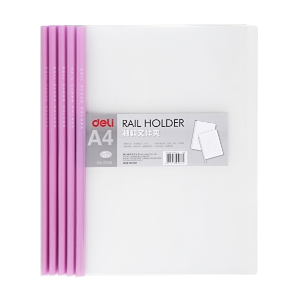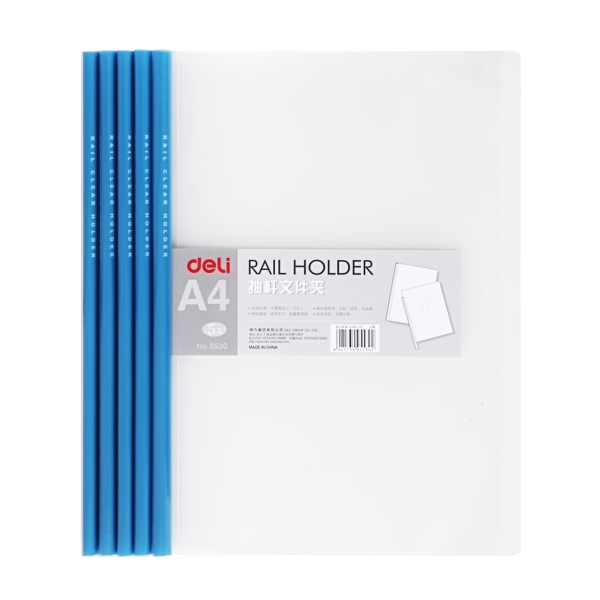 - 商品名称:得力(deli)5530 A4透明抽杆夹 5个/包 (颜色随机)