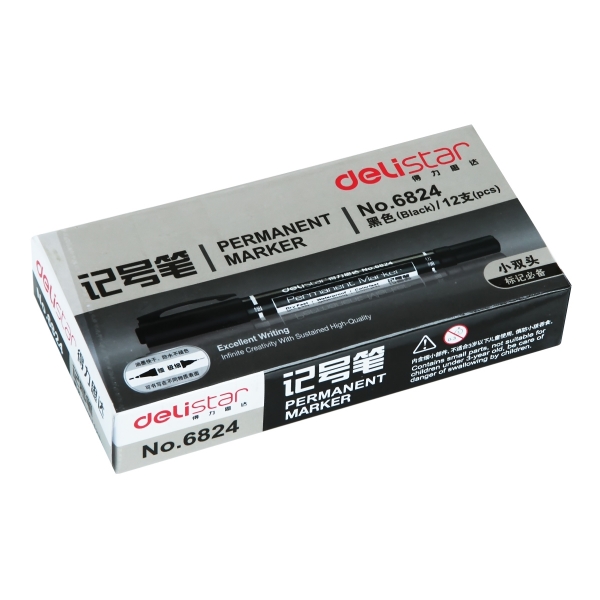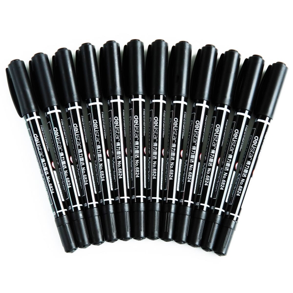 得力(deli) 6824 小双头记号笔 防水不退色 黑色 (计价单位:支)