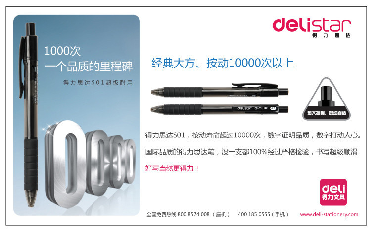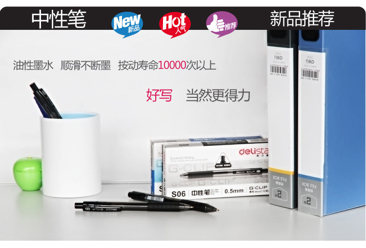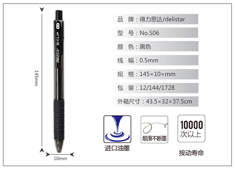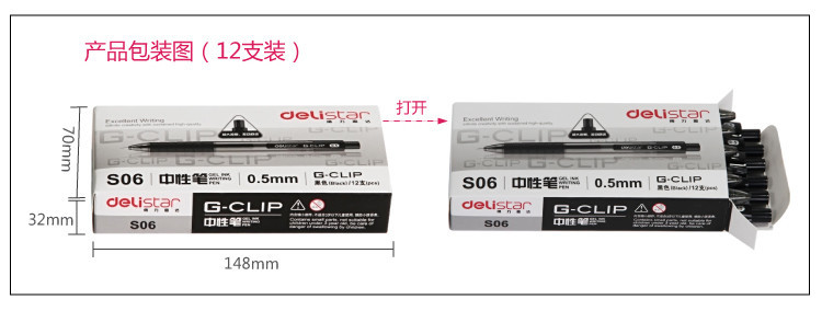 商品名称:得力(deli) S06 黑色按动中性笔 12支/盒 (计价单位:支)