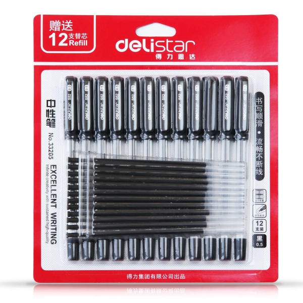 得力(deli)33205 中性笔 0.5mm实惠装12水笔+十二子弹头笔芯