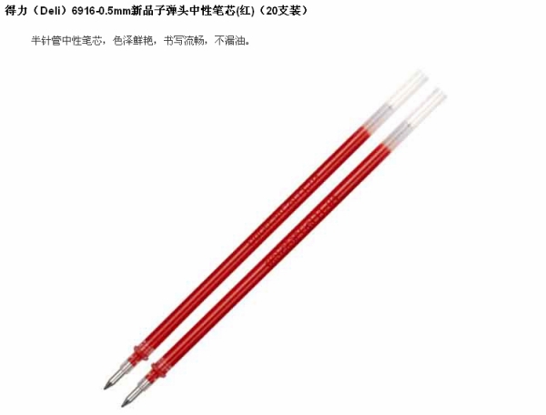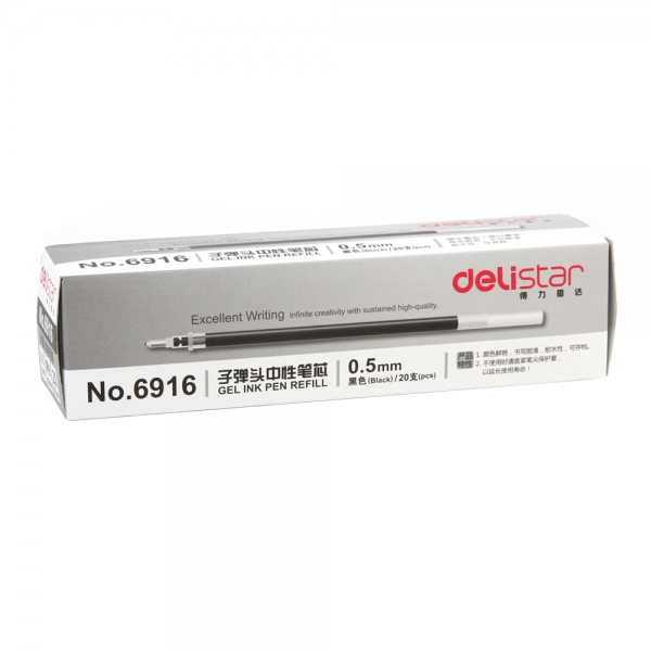 商品名称:得力(deli)6916 0.5mm黑色子弹头笔芯 中性笔水笔签字笔替芯 20支/盒