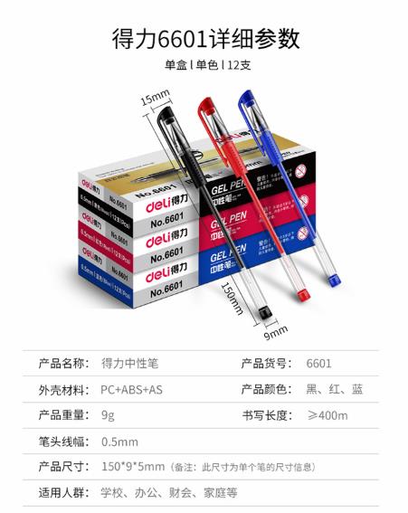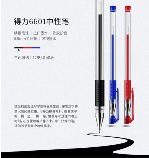 商品名称:得力(deli)6601 半针管中性笔 0.5mm