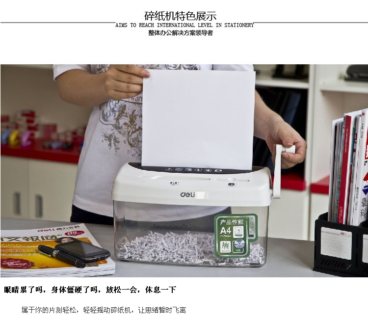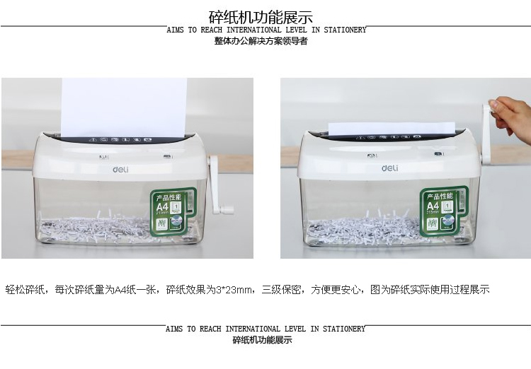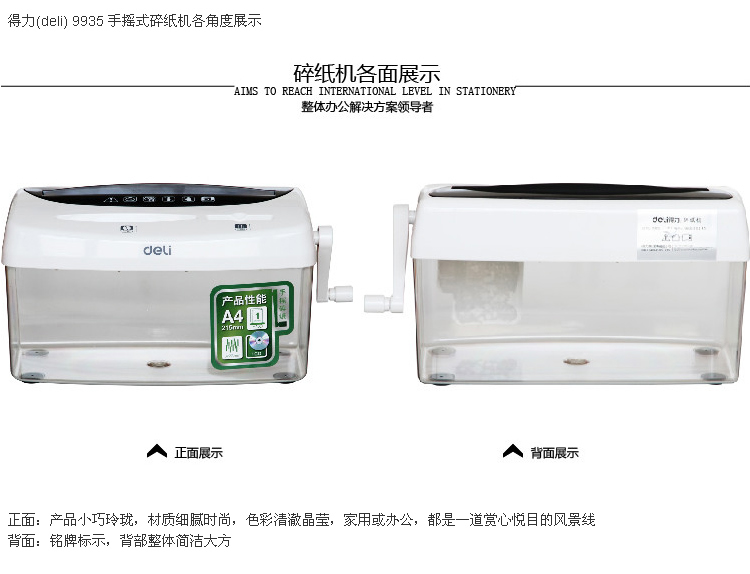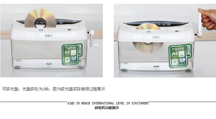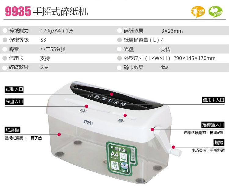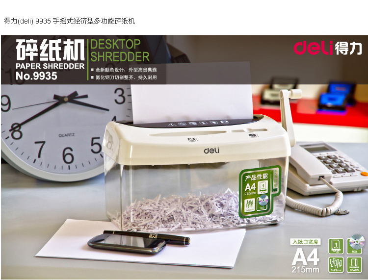 商品名称:得力 9935碎纸机 手动家用条状静音 可碎光盘卡