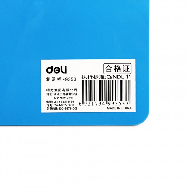 商品名称:得力 9353 A4学生考试作业塑料书写垫板