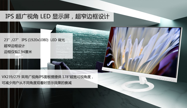 商品名称:华硕(ASUS) VX239H-W 23英寸超窄边 LED背光IPS宽屏液晶显示器