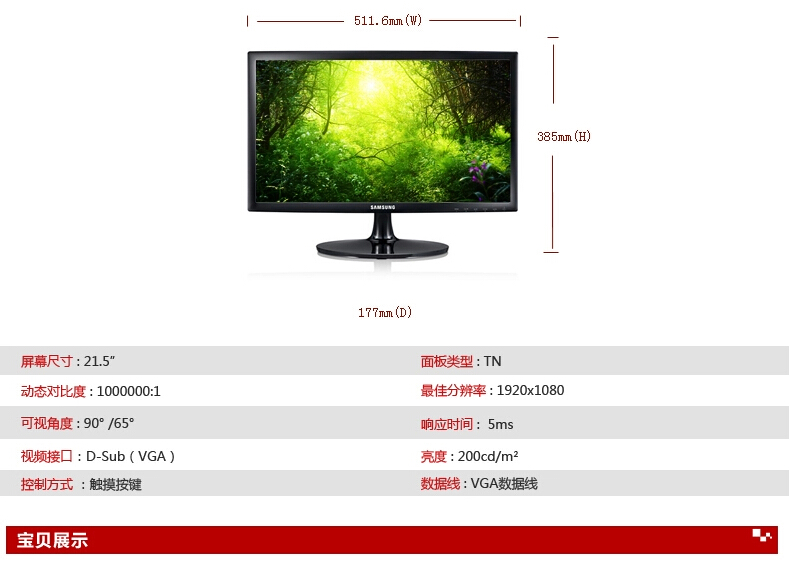 商品名称:三星(SAMSUNG)S22D300N 21.5英寸 液晶显示器