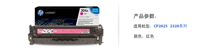 商品名称:HP Color LaserJet CC533A 品红色硒鼓 304A 适用CP2025 2320系列