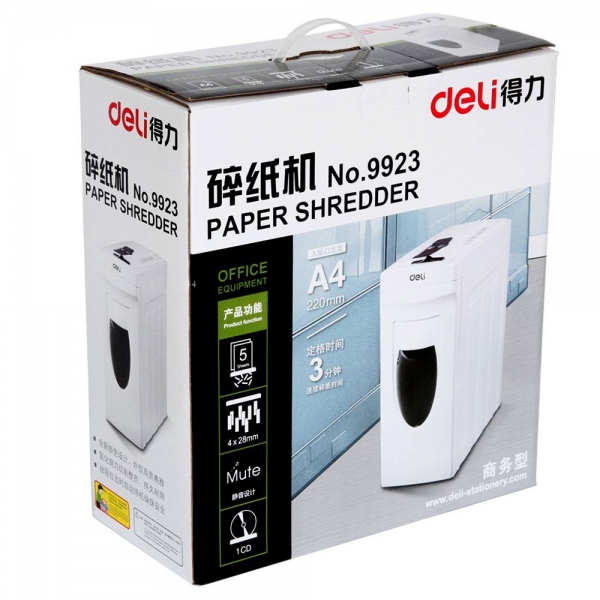 商品名称:得力(deli)9923 多功能碎纸机 段状4*28mm 连续粉碎3分钟 11L/3级保密