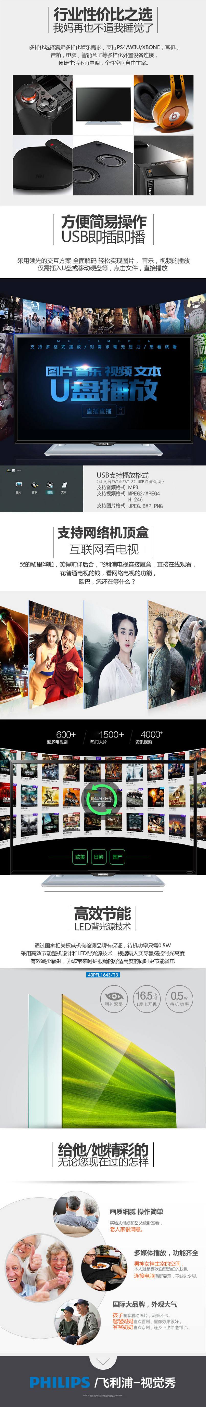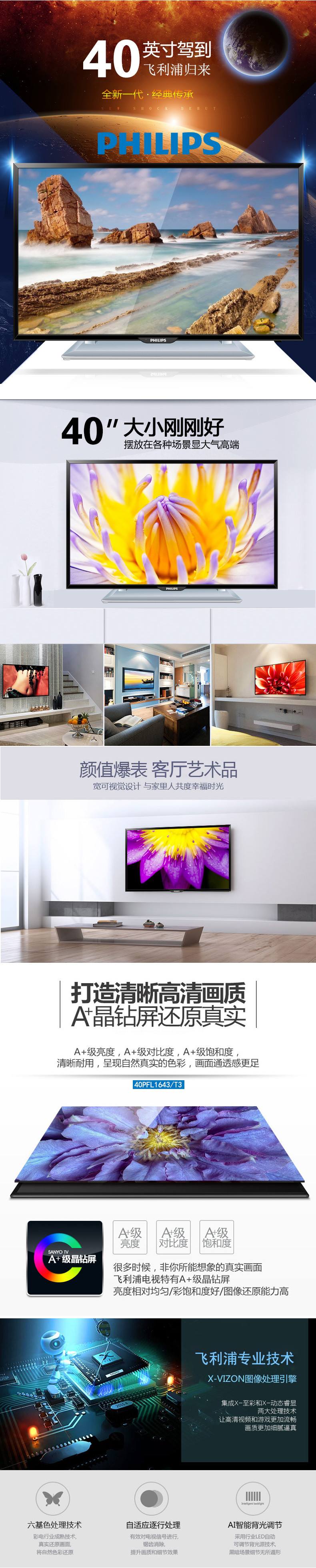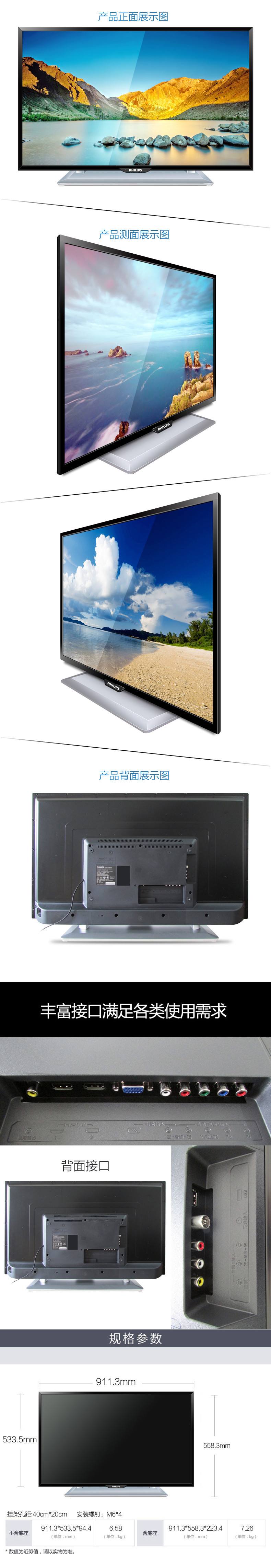商品名称:飞利浦(Philips) 40PFL1643/T3 40英寸led节能平板高清液晶电视机