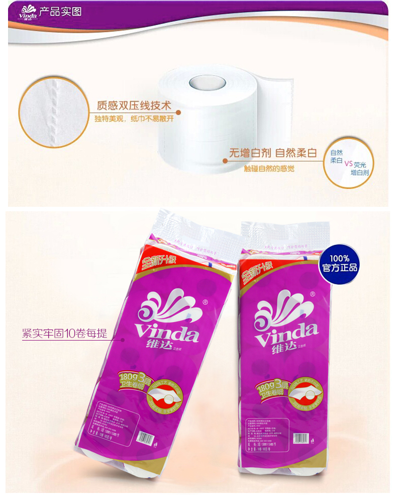 商品名称:维达180g卫生纸三层卫生卷纸10卷