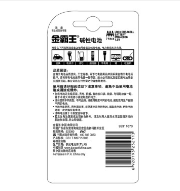 商品名称:金霸王(Duracell)5号/7号电池 6粒/卡