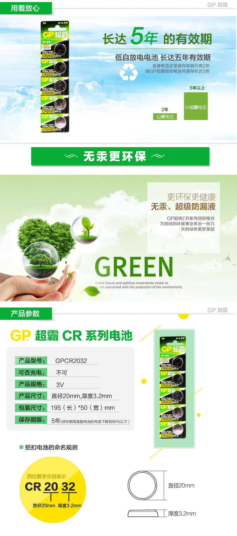 超霸CR2032纽扣电池3V电子秤天猫魔盒手表小米遥控器电池