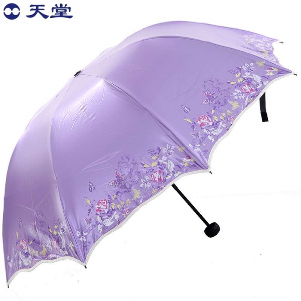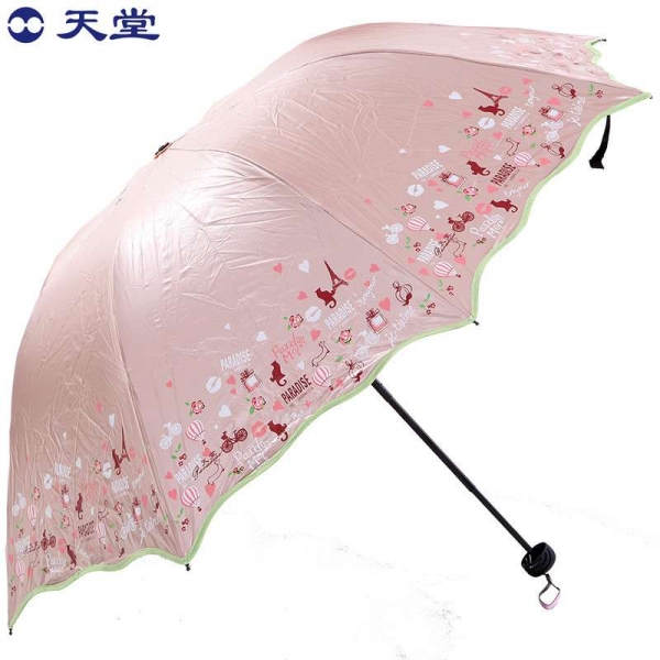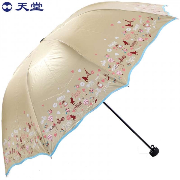 商品名称:天堂伞 黑漆钢骨晴雨伞 黑涤彩胶太阳伞 三折遮阳伞33190完美旅行