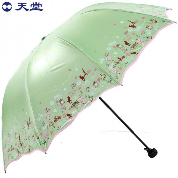 天堂伞 黑漆钢骨晴雨伞 黑涤彩胶太阳伞 三折遮阳伞33190完美旅行