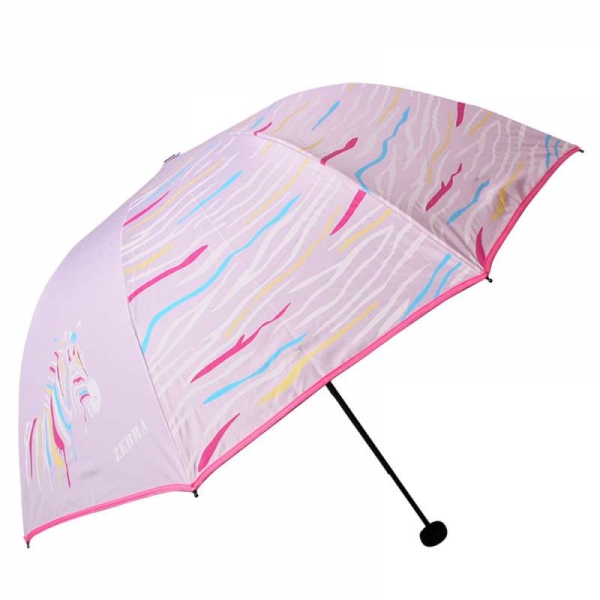 天堂伞33012E红莲 彩纹斑马黑胶丝印防紫外线三折全钢蘑菇钢晴雨伞