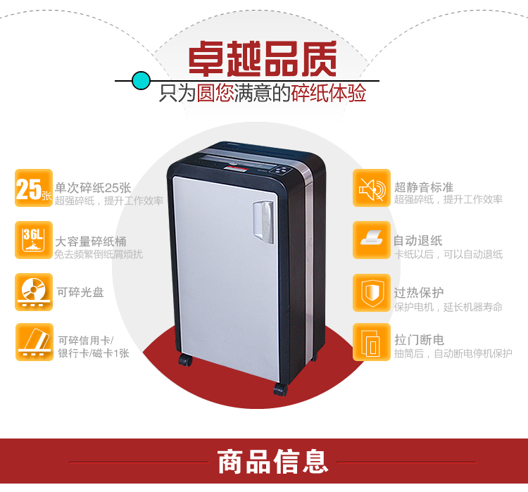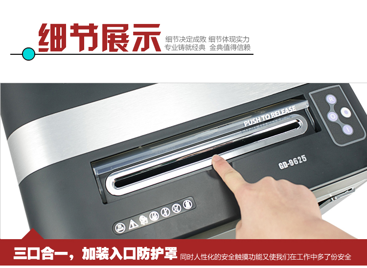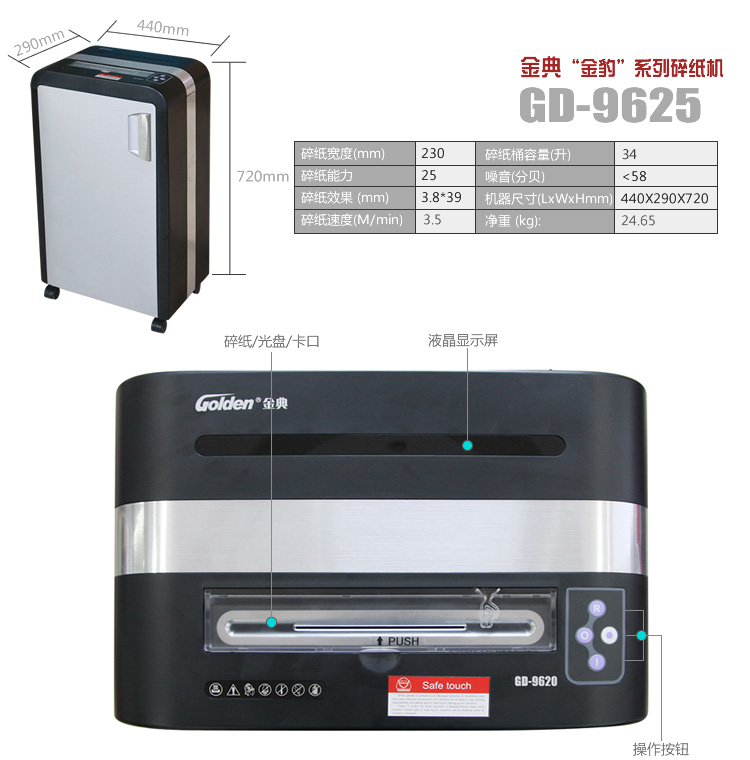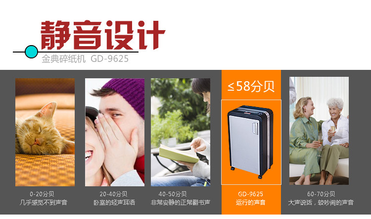 商品名称:金典GD-9625电动个人家用办公碎纸机(单次25张/可碎光盘/3级保密/超静音)
