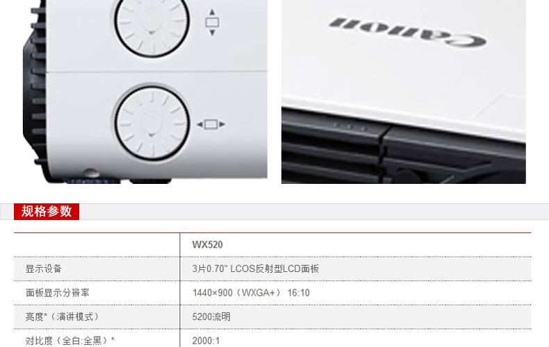 商品名称:Canon/佳能 LCOS工程系列 投影机 WX520