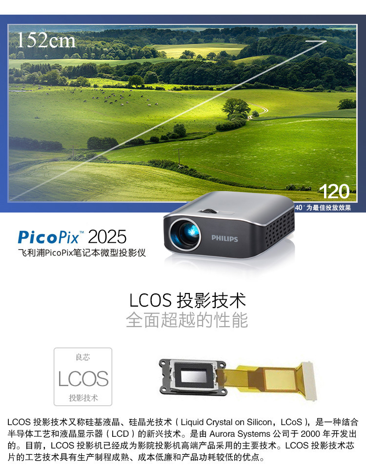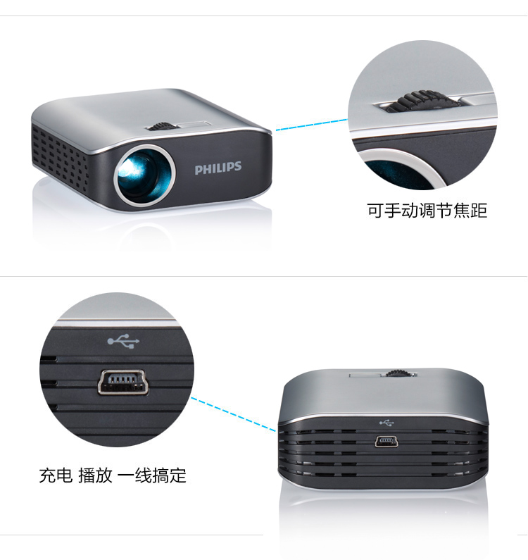 飞利浦 PPX2055 手持微型投影仪 家用商务高清便携式
