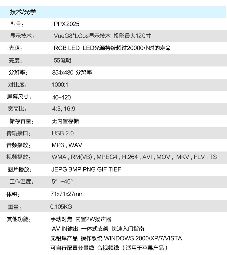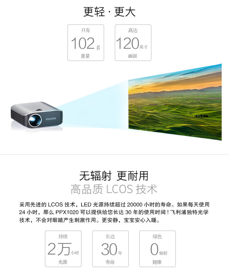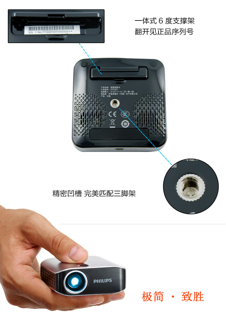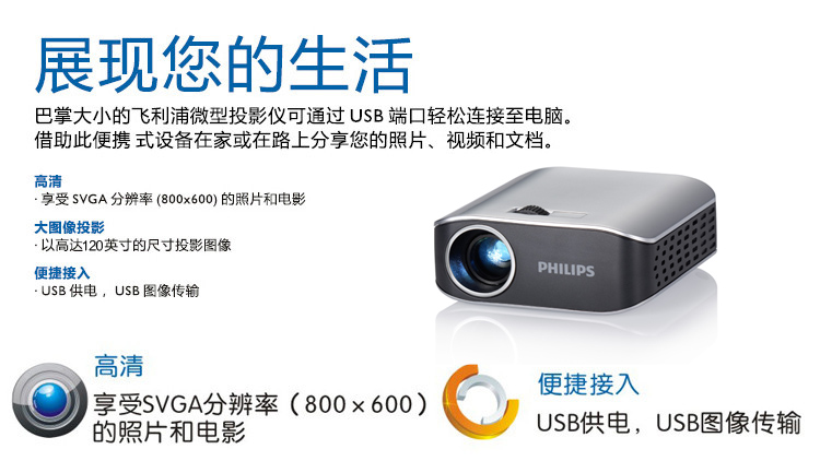 商品名称:飞利浦 PPX2055 手持微型投影仪 家用商务高清便携式