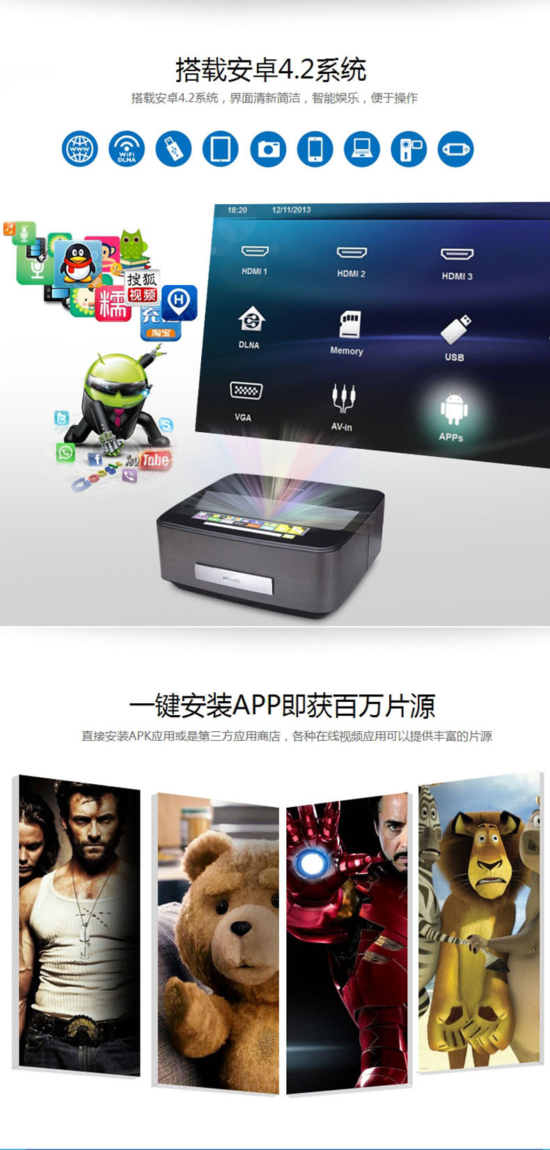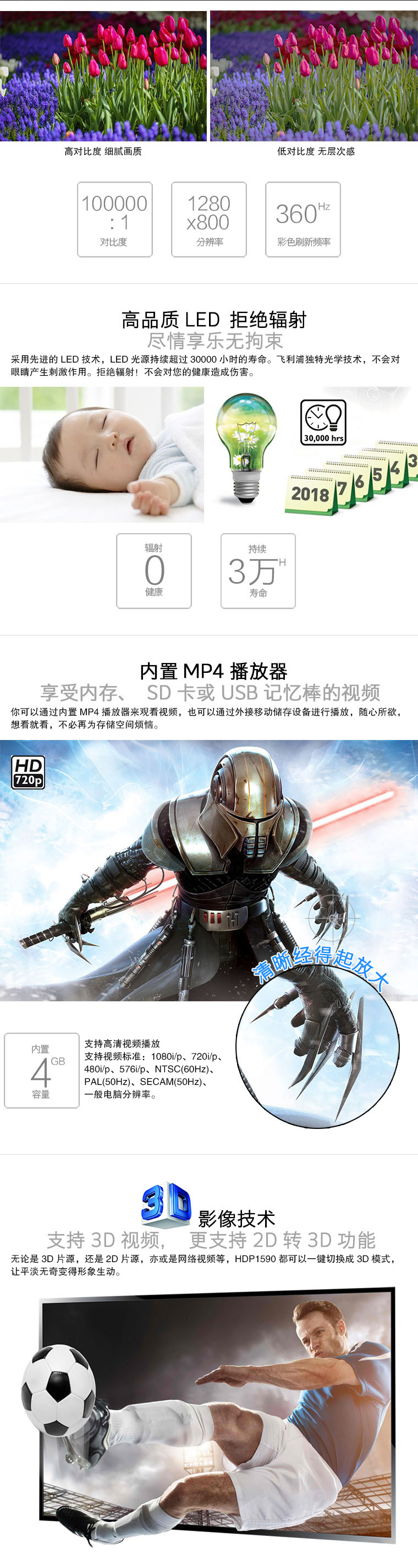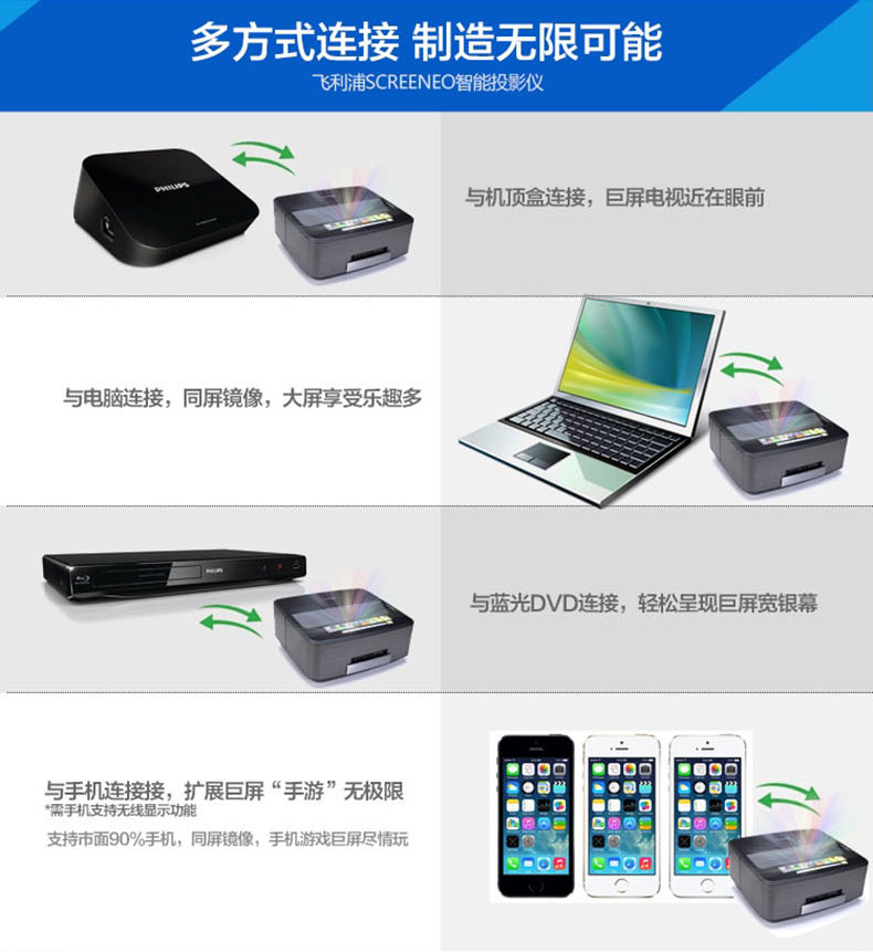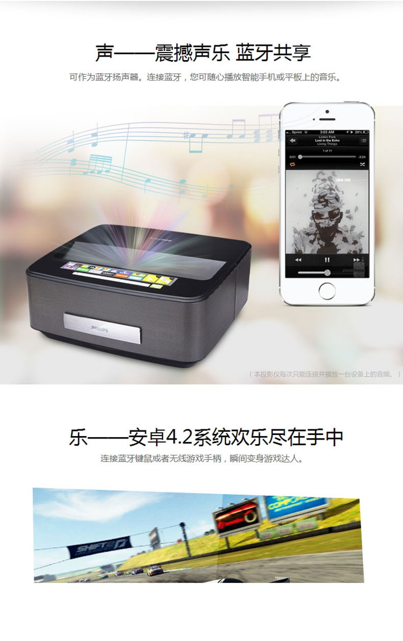 商品名称:飞利浦LED超短焦投影仪HDP1590高清家用3D1080P智能影院无屏电视