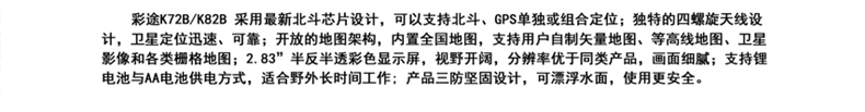 商品名称:华辰北斗彩途K72B 户外手持GPS北斗测亩仪