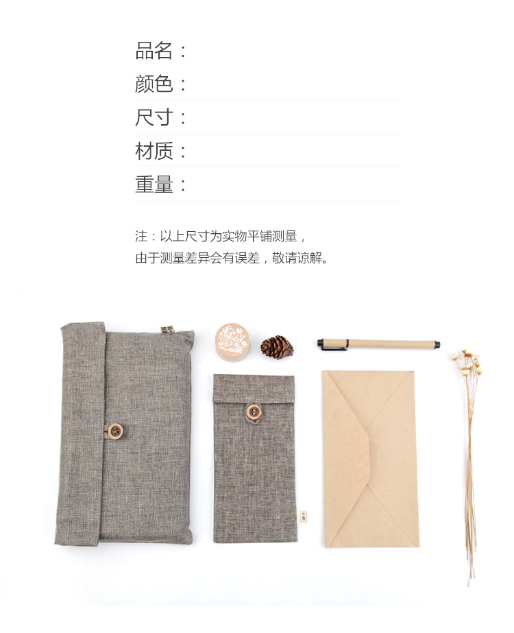 商品名称:kinbor DT5550 棉麻款文具袋(留白)190*90mm