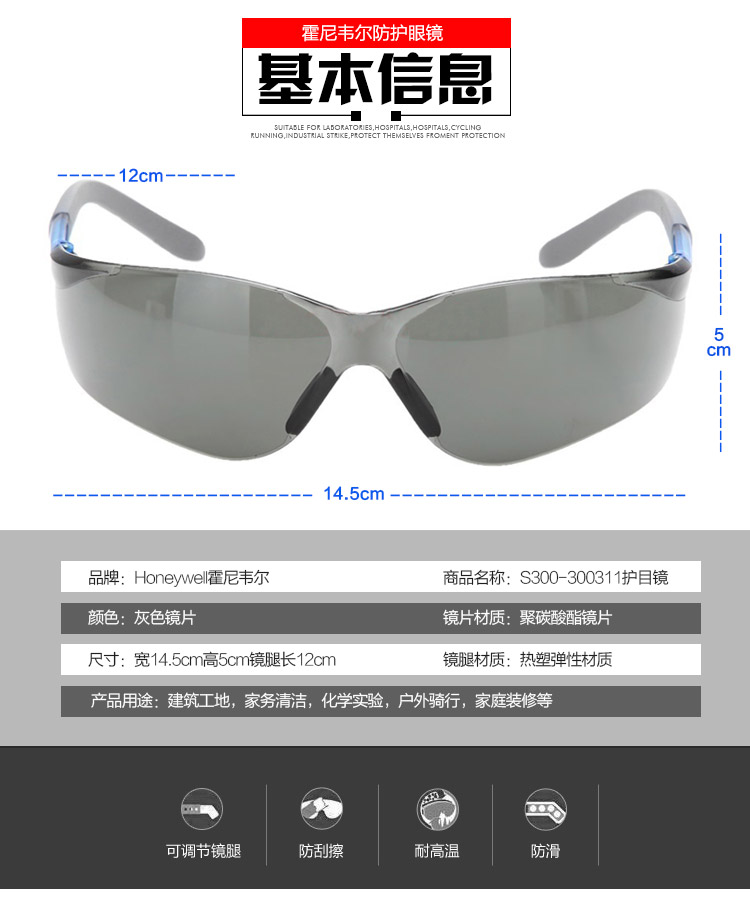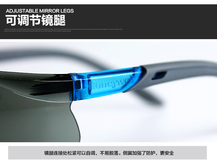 商品名称:霍尼韦尔 HONEYWELL 300311护目镜S300A蓝款灰色镜片男女防风防沙防尘防雾骑行运动眼镜10副/盒