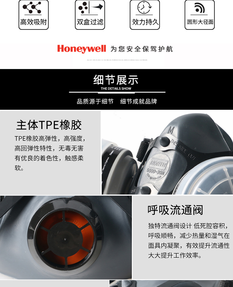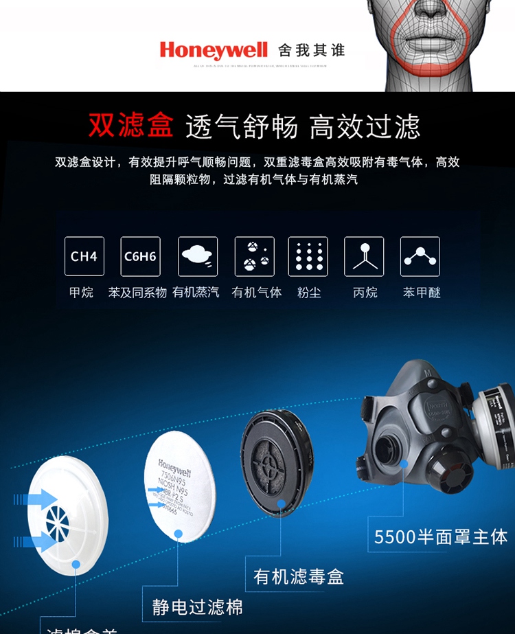 商品名称:霍尼韦尔 HONEYWELL 5500防毒面具主体防护面罩12只/箱