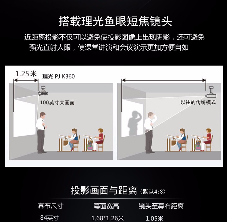 理光(RICOH)K360 投影仪办公 用高清3D培训便携式投影机 短焦广角理光