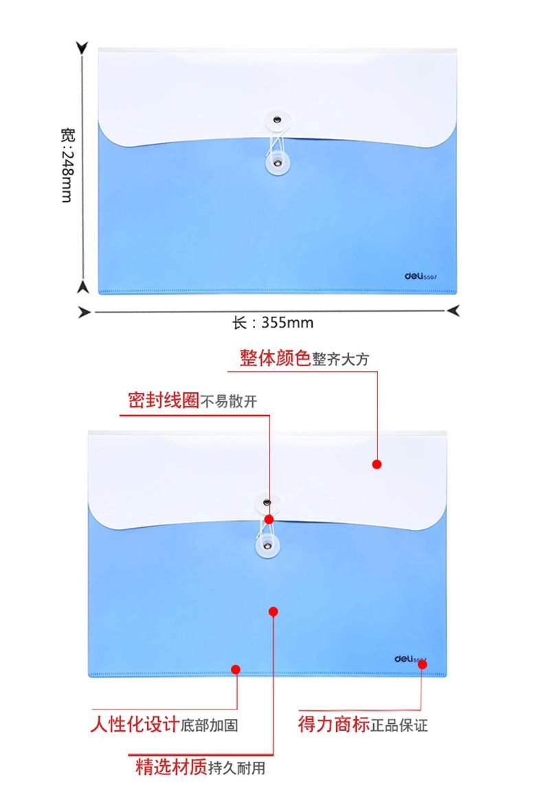 商品名称:得力 5507 FC实色绕绳文件袋 颜色随机