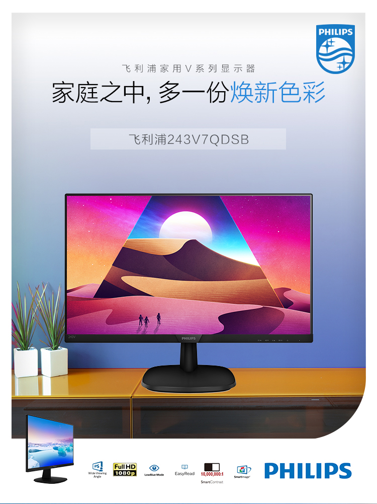 商品名称:飞利浦(PHILIPS)显示器 243V7Q 窄边框IPS台式电脑液晶屏幕壁挂HDMI办公监控/HDMI+VGA接口