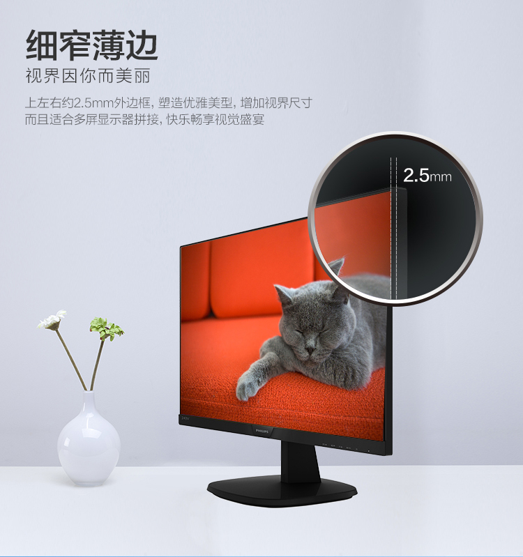 飞利浦(PHILIPS)显示器 243V7Q 窄边框IPS台式电脑液晶屏幕壁挂HDMI办公监控/HDMI+VGA接口