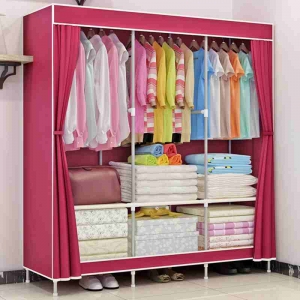 商品名称:索尔诺 1407衣柜 加厚无纺布衣橱 双号收纳柜 酒红色