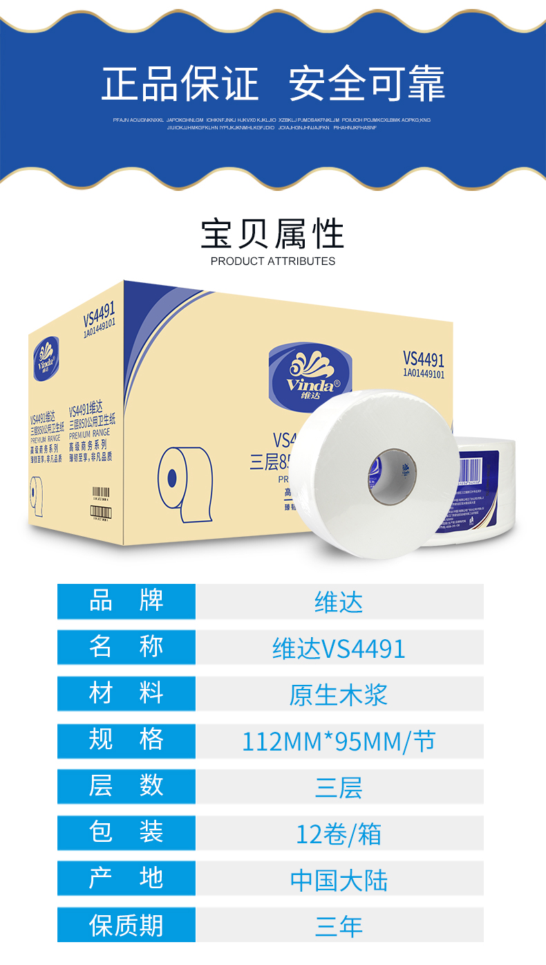 商品名称:维达(Vinda) VS4491 大盘纸三层850克 12卷/箱