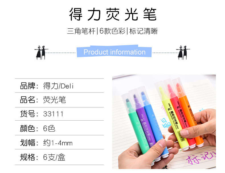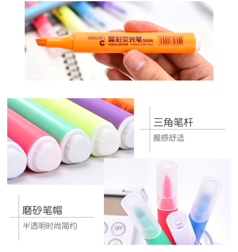 商品名称:得力(deli)S627 双头荧光笔6色 套装(圆头+斜头)