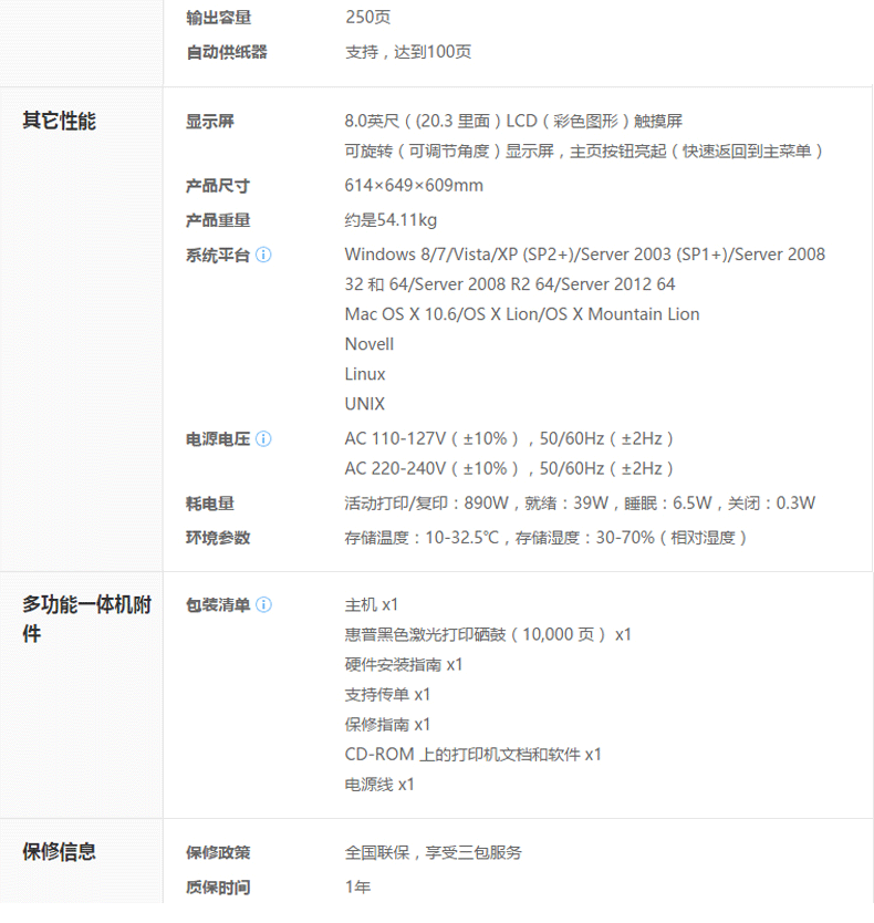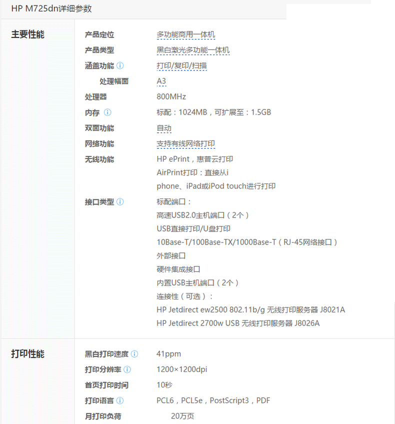 商品名称:惠普(HP)LaserJet Enterprise MFP M725dn激光多功能一体机