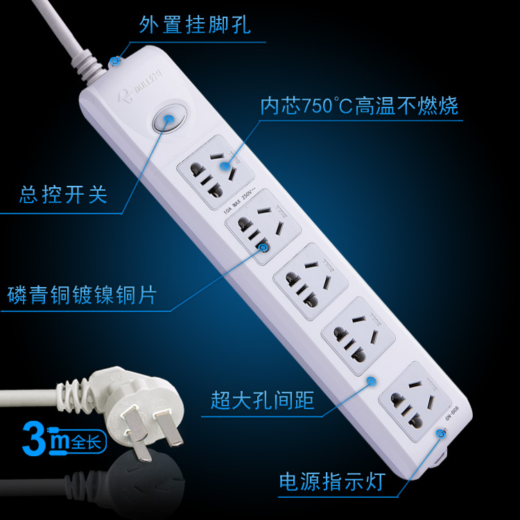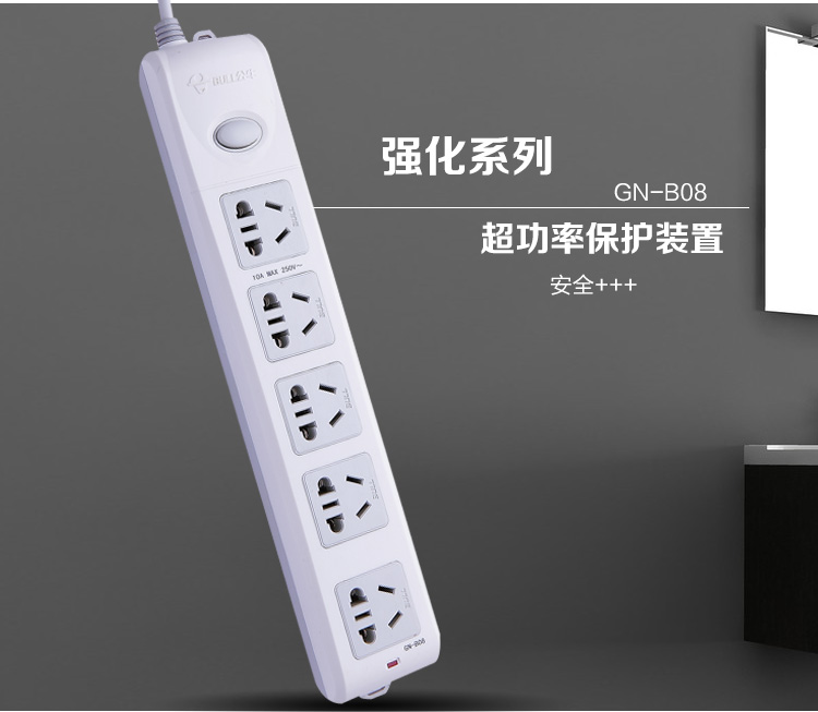 商品名称:公牛 GN-B08 带总控开关五插位排插 过载保护
