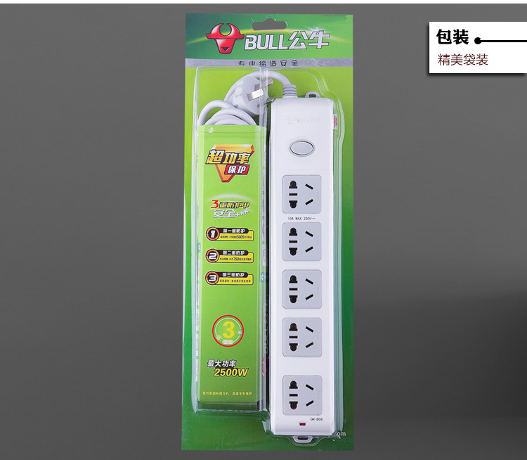 公牛 GN-B08 带总控开关五插位排插 过载保护