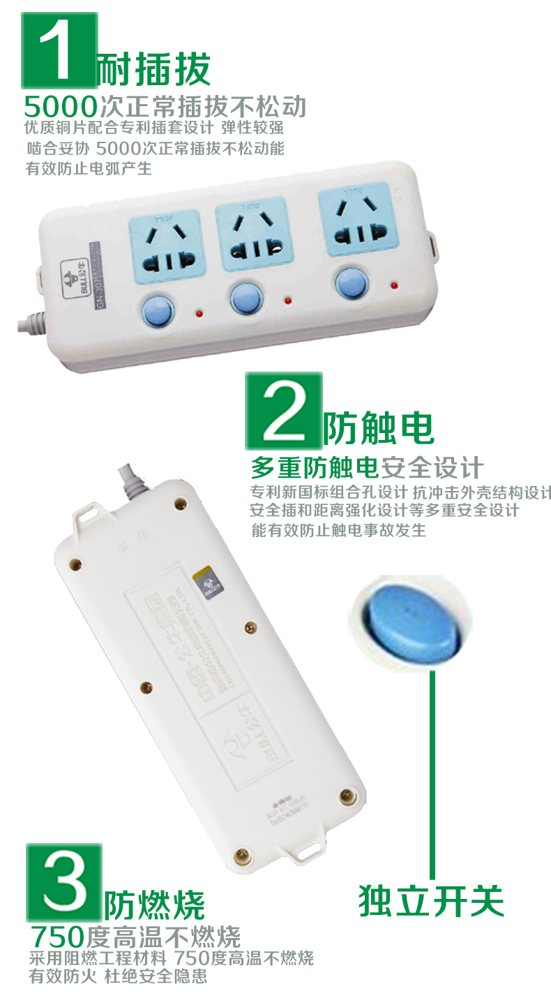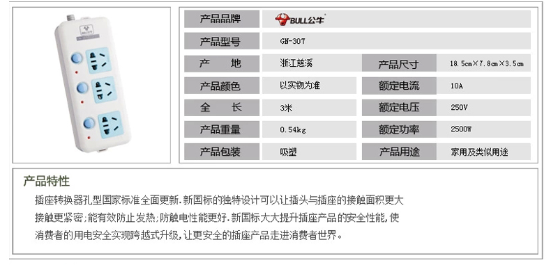 商品名称:公牛 GN-307 插座接线板 独立开关 3米