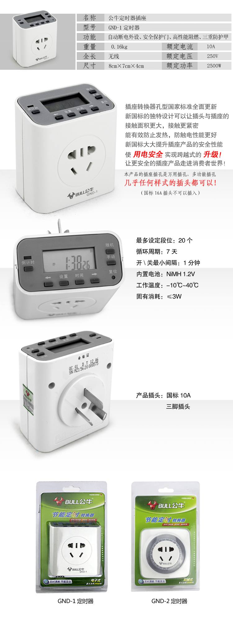 商品名称:公牛 GND-1 倒计时定时电子式插座