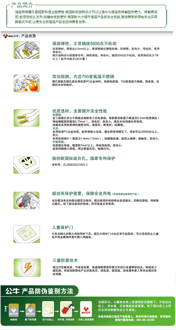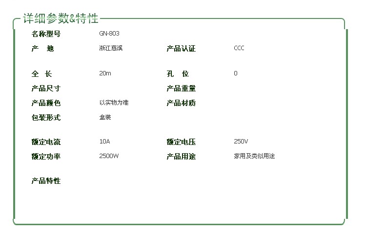 商品名称:公牛 GN-803 接线板插座 4孔位 (新国标) 20M