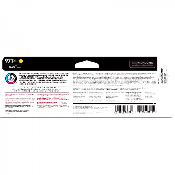 HP 971XL (CN624AA) 超大容量黄色墨盒,6600 页,适用:HP Officejet Pro X451dn/X451dw/X551dw/X476dn/X476dw/X576dw |