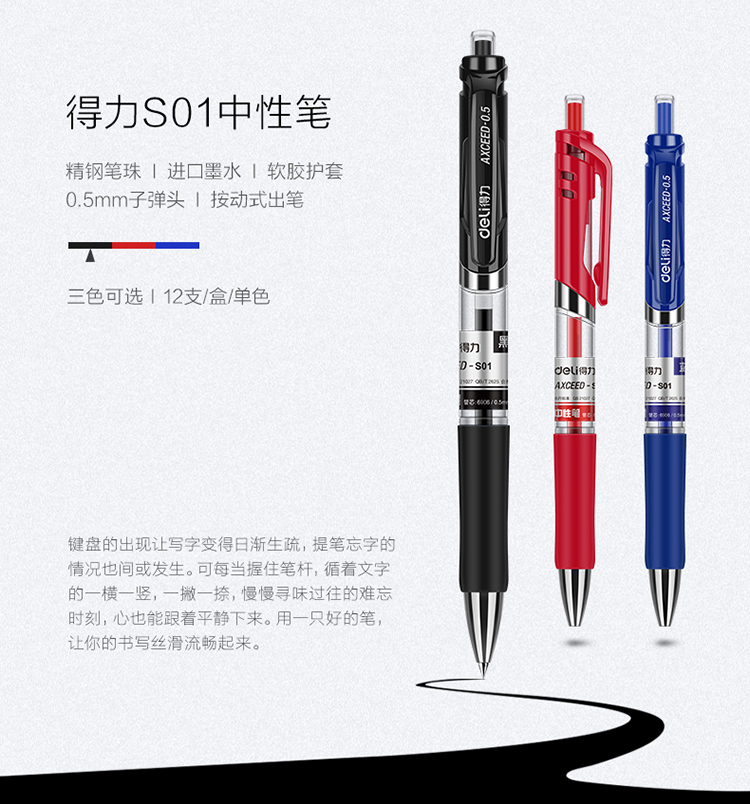 商品名称:得力(deli) S01 经典按动签字笔(红色) (计价单位:支)
