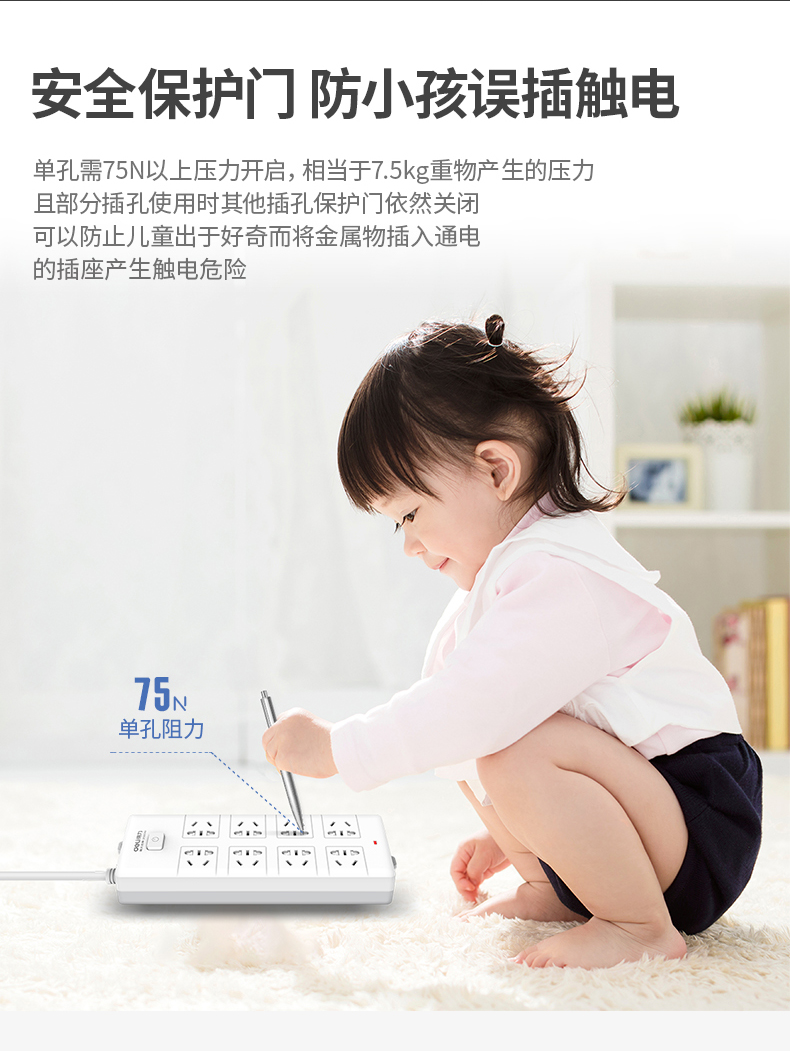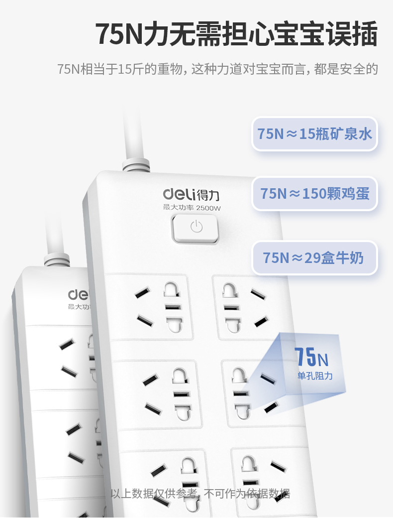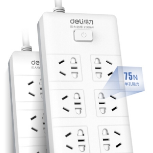 商品名称:得力(deli) 18262 新国标 8位 总控插座 3米