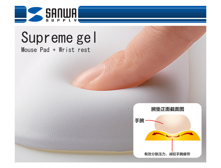 山业SANWA 果冻人体工学鼠标垫 腕托 预防肩周炎 台湾制造 蓝 MPD-GEL25BL
