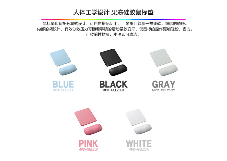 商品名称:山业SANWA 果冻人体工学鼠标垫 腕托 预防肩周炎 台湾制造 蓝 MPD-GEL25BL