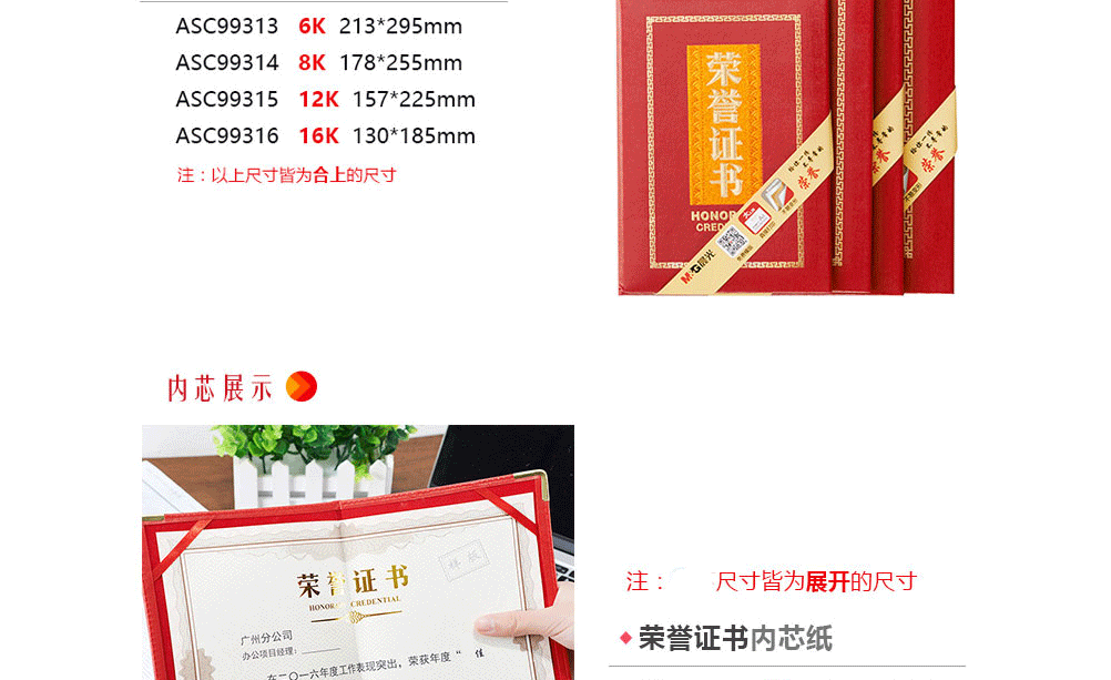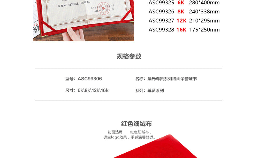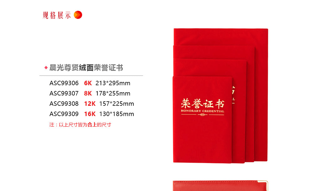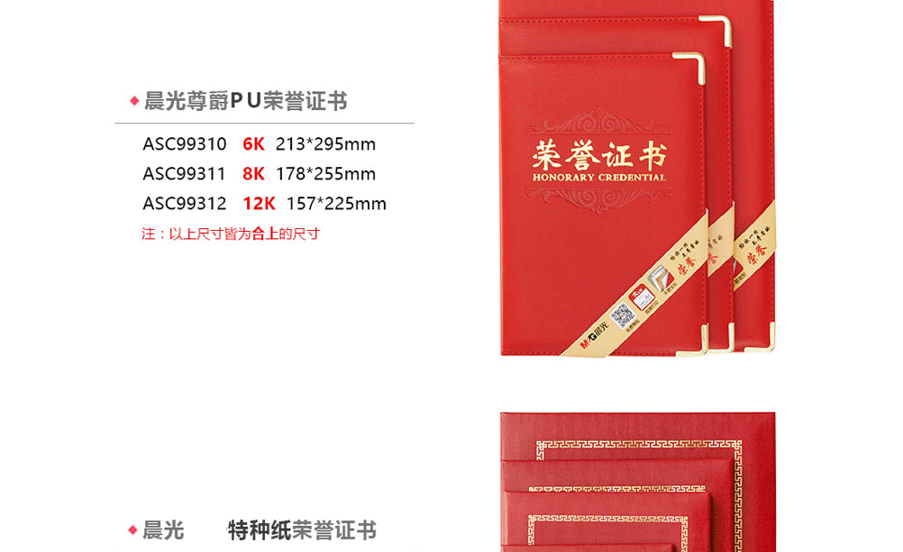 商品名称:晨光(M&G) ASC99311 尊爵PU面 荣誉证书 合上8K 178*255mm (本+芯)