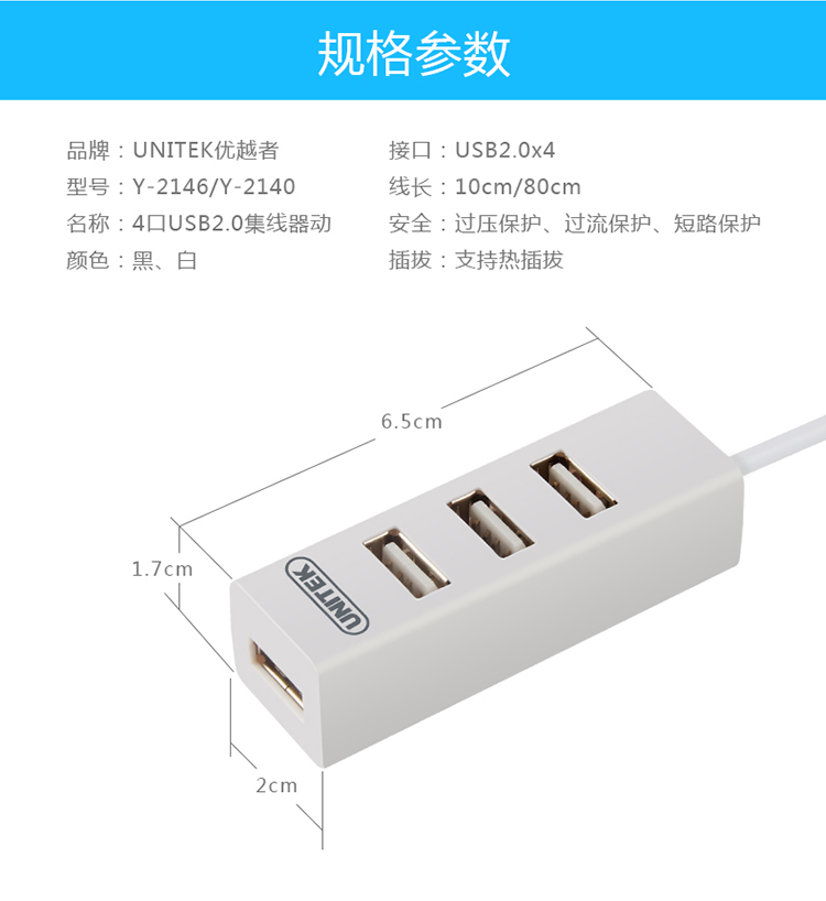 商品名称:优越者(UNITEK)Y-2146 苹果笔记本/超级本迷你直插式 4口USB HUB集线器(白色)
