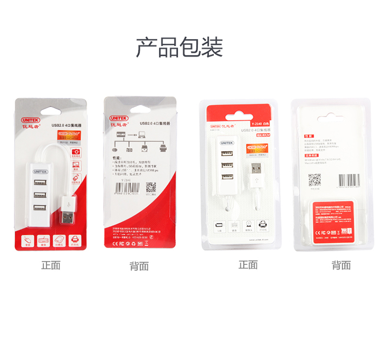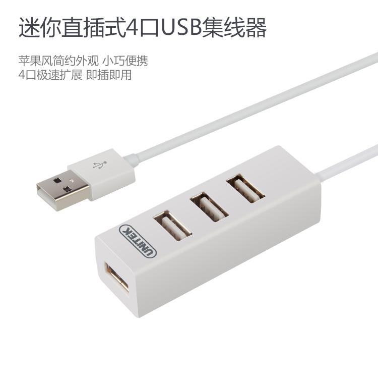 优越者(UNITEK)Y-2146 苹果笔记本/超级本迷你直插式 4口USB HUB集线器(白色)